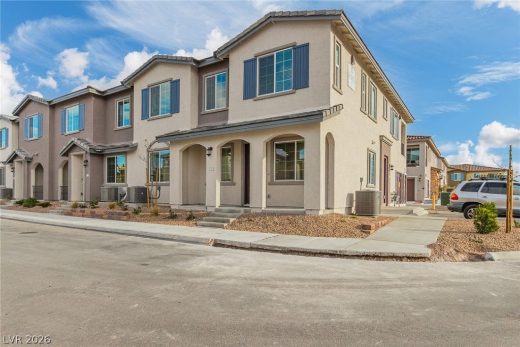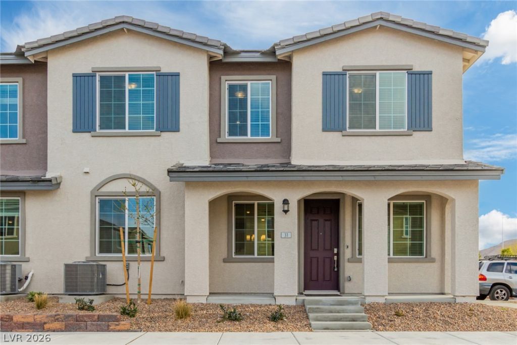 Beautiful townhouse in Las Vegas! Upon arrival, you will be greeted with a cozy porch where you can sit and enjoy your morning cup of coffee. Inside, you'll find a perfectly flowing open layout featuring wood-look floors, a chic chandelier, & recessed lighting. Cooking is a delight in this impeccable kitchen boasting white staggered cabinets, SS appliances, granite counters, and an island w/a breakfast bar. Don't miss the perfectly-sized loft ideal for private gatherings. Continue to the primary bedroom showcasing an immaculate ensuite w/dual sinks, separate shower/tub, & a walk-in closet. The second bedroom is located downstairs for your convenience.